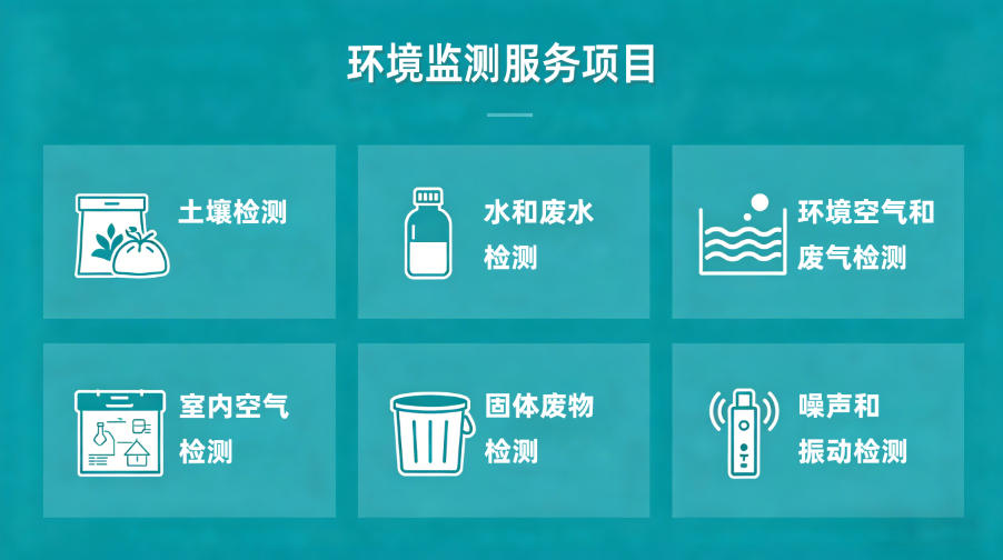 环境检测涵盖土壤检测、水和废水检测、环境空气和废气检测、室内空气检测、固体废物检测、噪声和振动检测、辐射等检测,